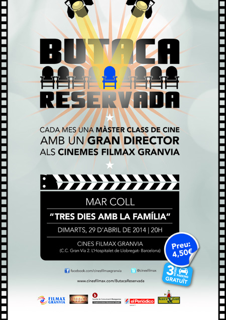 Butaca Reservada es un evento organizado por Cines Filmax Granvia y Celluloid, Cine en el cuerpo en colaboración con la Facultad de Comunicación Blanquerna-Universidad Ramon Llull, El Periódico de Catalunya y el restaurante Kurz&Gut.